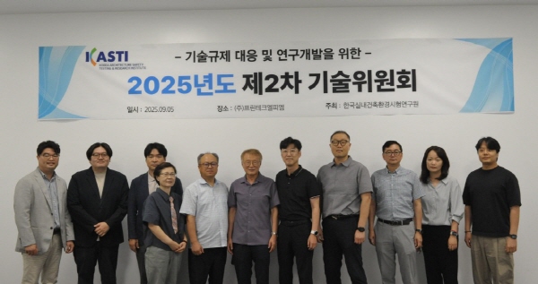 한국실내건축환경시험연구원은 지난 2025년 9월 5일(금), 경기도 화성시 소재 ㈜프린테크엘피엠 회의실에서 ‘2025년도 제2차 기술위원회’를 개최하고, 기술규제 대응 및 연구개발 추진 전략에 대해 논의했다.